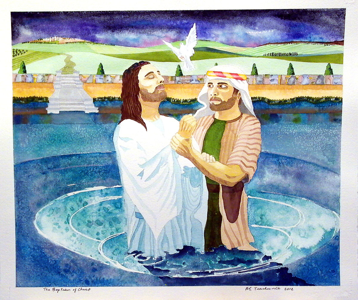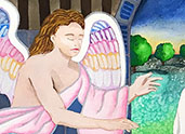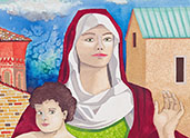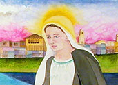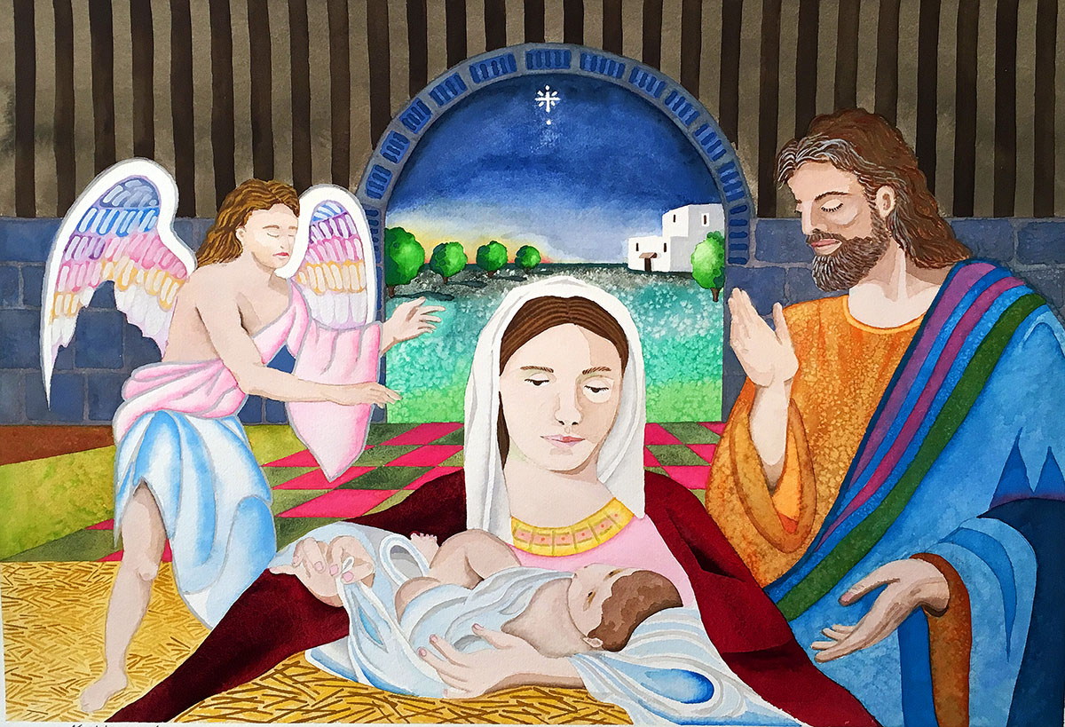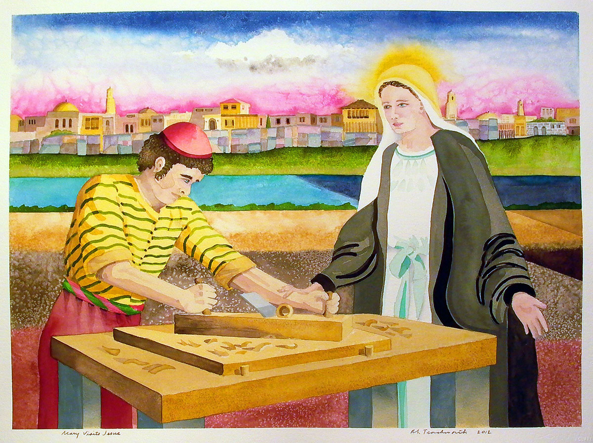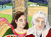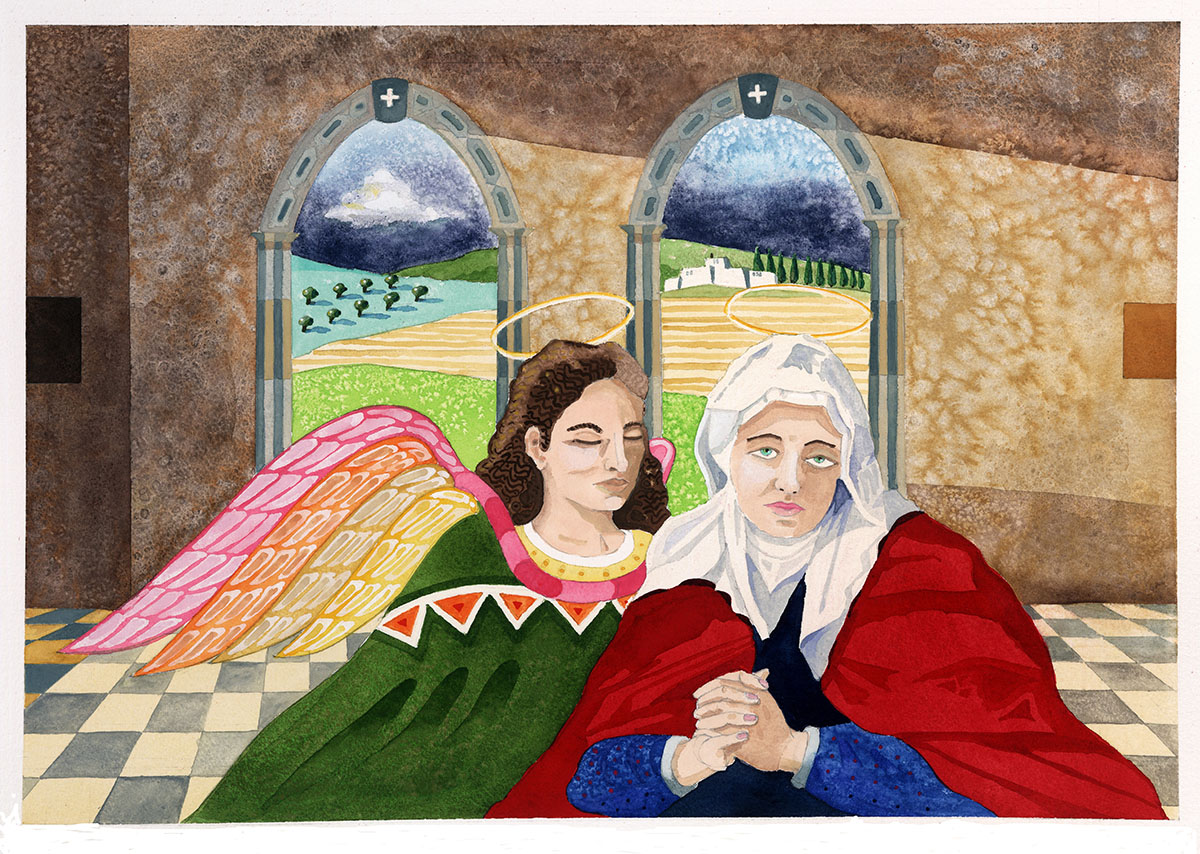 Trained in visual art, I completed my M.A. at Wayne State University in painting. I began by painting landscapes on canvas using acrylic paint and on paper using watercolor. Through out the years, I competed in fine art competitions, and was represented by galleries, with my acrylic abstractions and representational watercolors. My journey in becoming a contemporary artist of Christian art began after my acceptance into full communion with the Catholic Church in 2008. My RCIA (Rite of Christian Initiation of Adults) experience and my study of Fra Angelica’s frescos at San Marco Convent in Florence, Italy were critical events in my life. They were the two major catalysts that changed my representational watercolor work. Above all, Fra Angelica’s work had a profound effect on me, especially his fresco, The Annunciation.