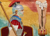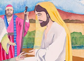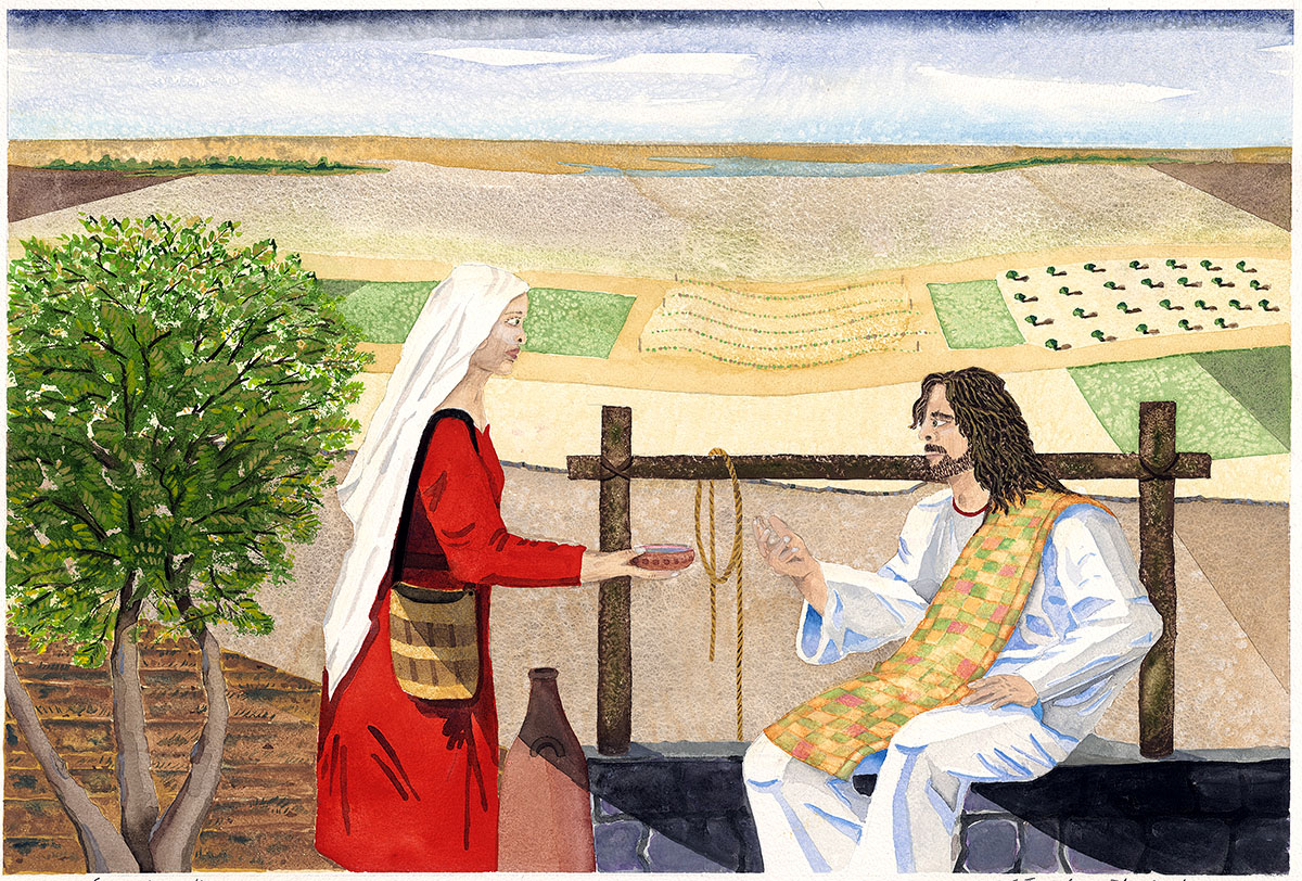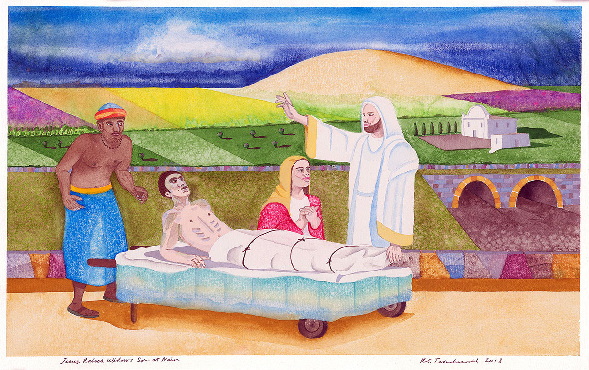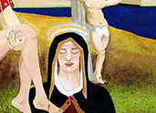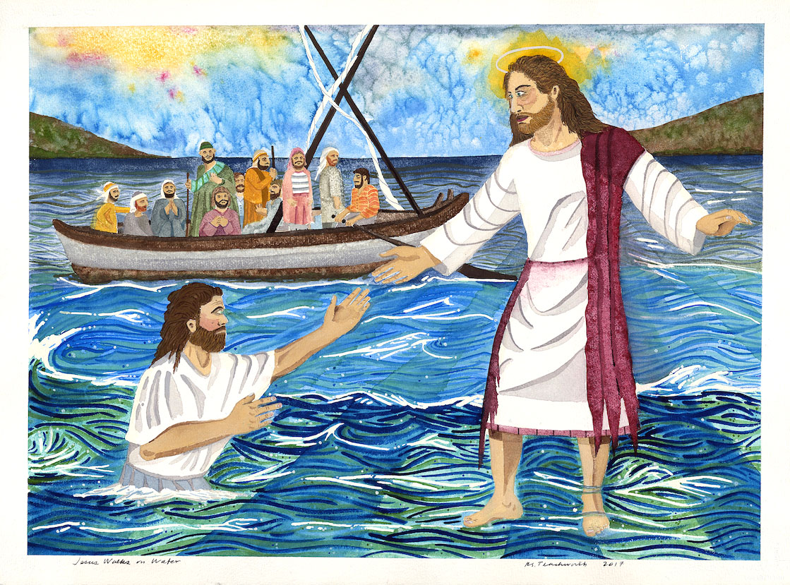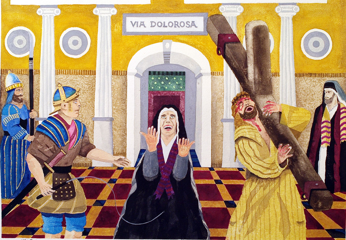 This event was extremely encouraging, and I began to study and research the paintings of Jesus, dating back to the fourteenth century. I spent time studying the work of Giotto, Raphael, de Vinci, Caravaggio, Botticelli, Rubens, Velazquez, Durer, Mantegna, Fra Angelico, and, Giovanni Bellini. I started by using many of the same traditional depictions in art history but developed my own interpretations relating to the figures, composition, color variations, and settings. Technically, I borrowed much from my previous work in watercolor, like adding backgrounds, texture to surface areas and my approach to a balanced composition.